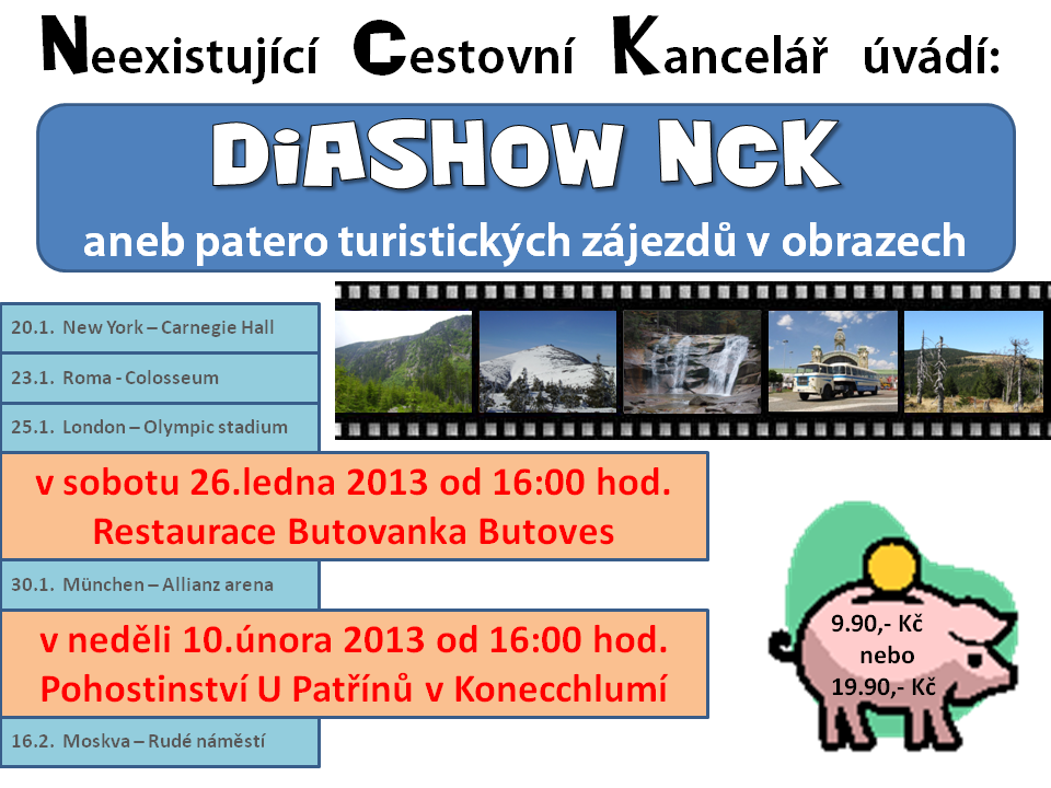 Diashow NCK aneb zájezdy v obrazech, se konala v Pohostinství U Patřínů v Konecchlumí.
