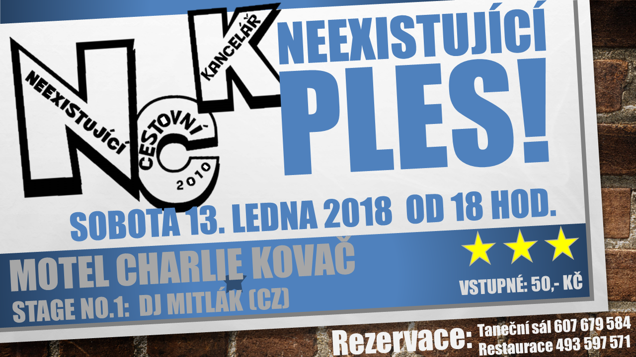 Již 3. Neexistující ples se bude konat v sobotu 13. ledna 2018 od 18 hodin v Motelu Charlie v Kovači.